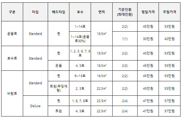 - ๊ธฐ์ค์ธ์ ์ธ ์ถ๊ฐ์๊ธ 1์ธ๋น 50,000์ ํ์ฅ ๊ฒฐ์ (0~7์ธ ๋ฏธ๋ง ๋ฌด๋ฃ, ์ฒดํฌ์ธ ์ ๋์ด ์ฆ๋น ๊ฐ๋ฅํ ๋ฑ๋ณธ ๋ฑ ์๋ฅ ์ง์ฐธ ํ์)